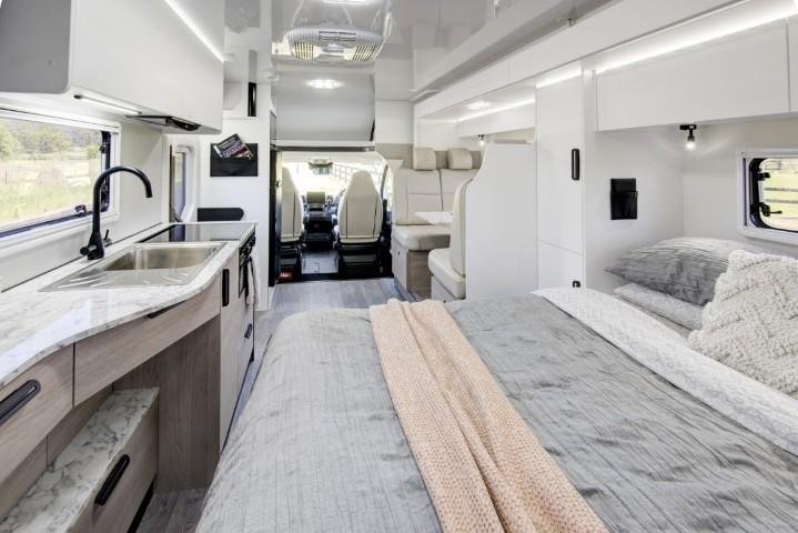 The Birdsville is fully self-contained with kitchen, rear bathroom, and is built on a Fiat chassis. Available as a B Type (storage over cabin) and C Type (bed over cabin), the Birdsville features a large slide out room with dinette, wardrobe and large bed. The slide out room extends at the push of a button to open up the living area of the motorhome and can be driven on a standard car licence!