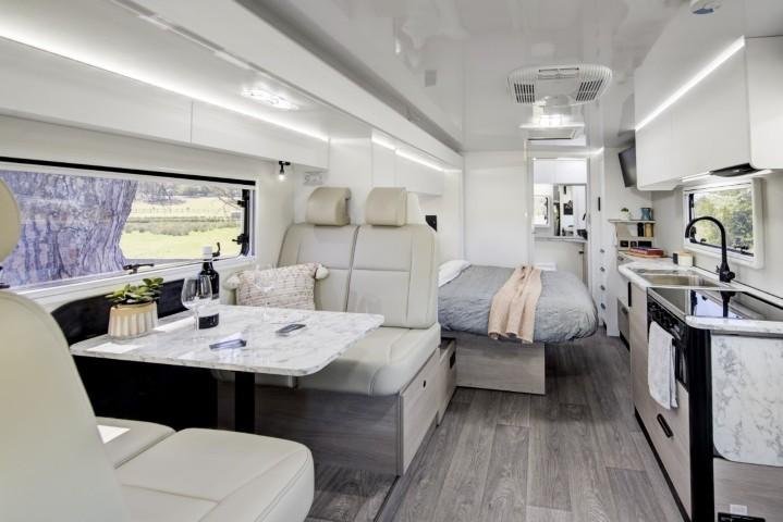 Air Conditioner - Roof mounted, 's own 12V & 240V integrated distribution control panels & energy management system, Awning - roll out with LED light, Awning - slide out awning, Cooktop - 4 burner with grill (3 gas, 1 electric), Fridge / Freezer - AES, Microwave, Radio: Internal - Chassis, Reverse camera - Dual cameras, Seatbelts: 4 x seatbelts with 2 x child restraints, Starlink ready connections, TV - Smart TV living room