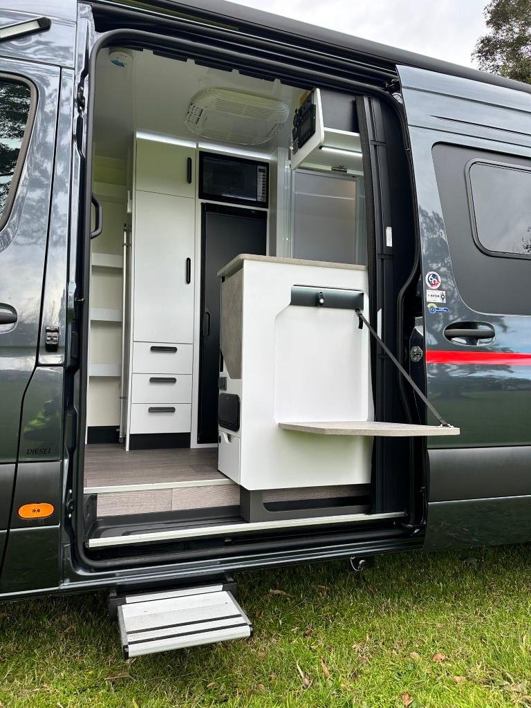 The Diversion luxury camper-van is built on the impressive Mercedes Sprinter Auto LWB chassis, standard with electric sliding door, grey metallic paint and 17" alloy wheels. It is 7-meters in length with all the mod cons, unrivalled to make your trip all that more special.'