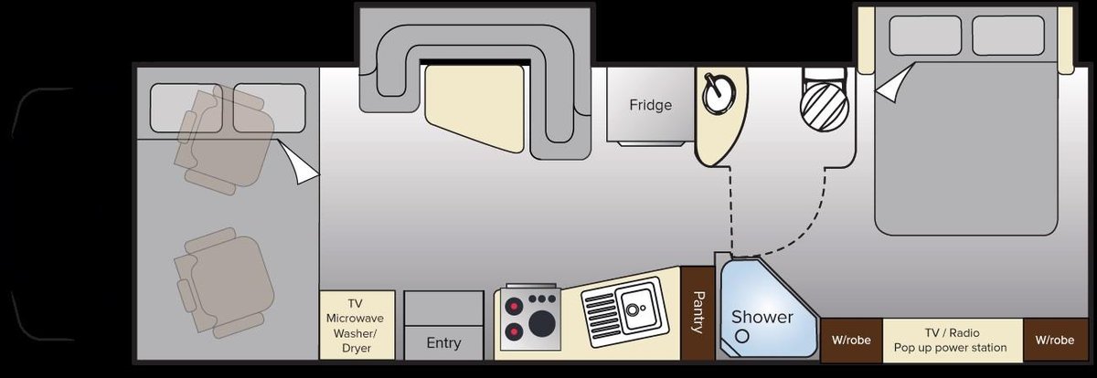 Two large slide out rooms – increasing your living and bedroom space with the touch of a button.