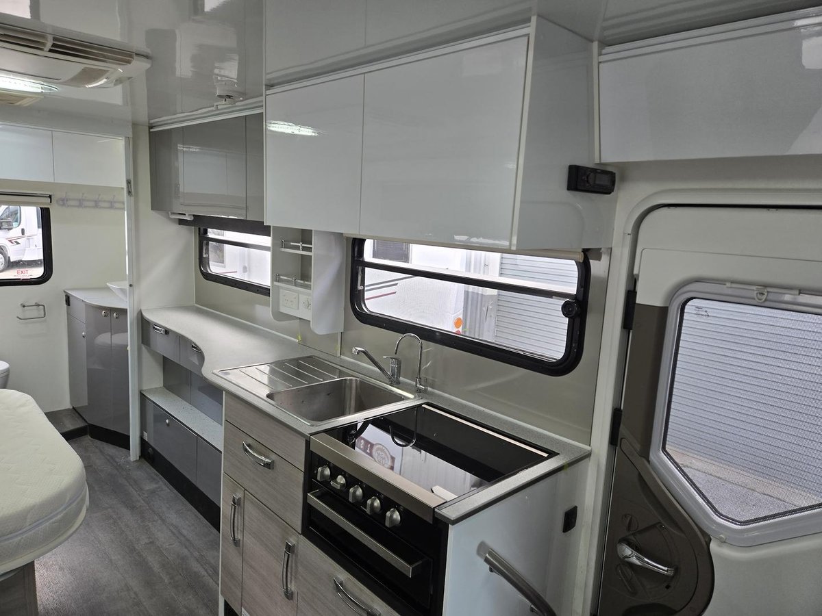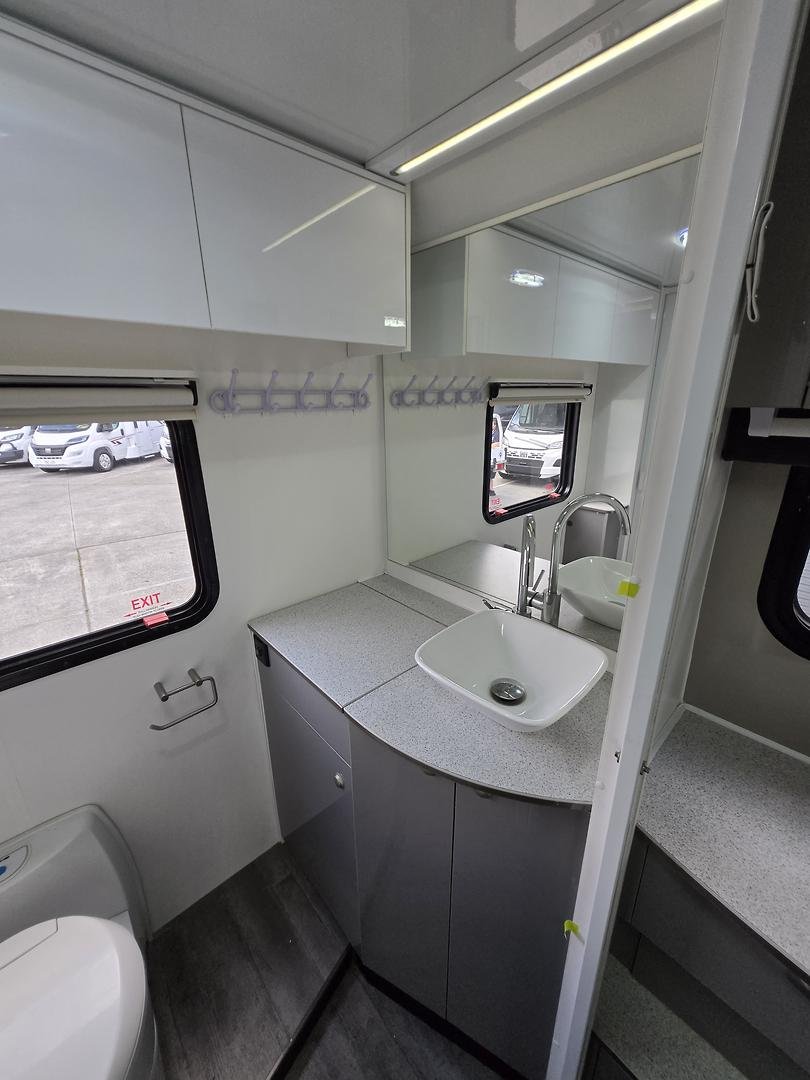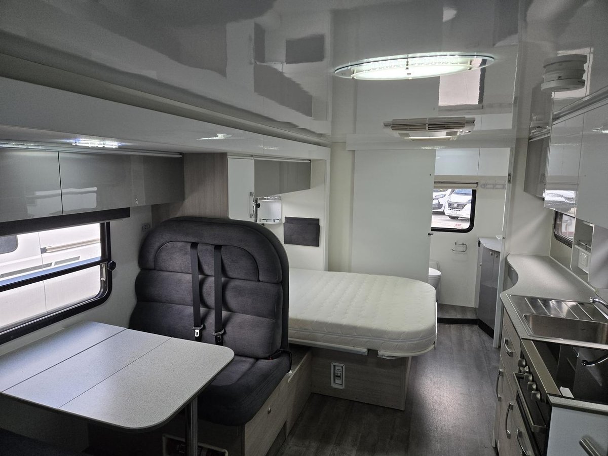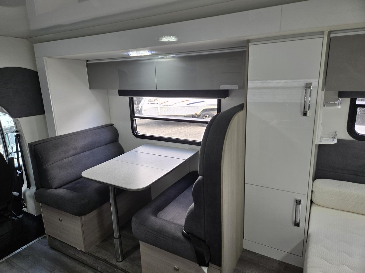 The Birdsville is fully self-contained with kitchen, rear bathroom, and is built on a Fiat chassis. The Birdsville features a large slide out room with dinette, wardrobe and large bed. The slide out room extends at the push of a button to open up the living area of the motorhome and can be driven on a standard car license!