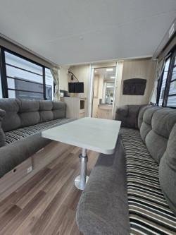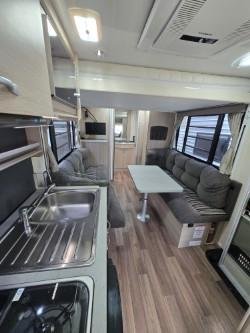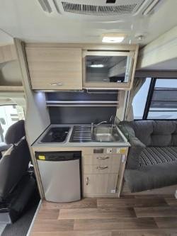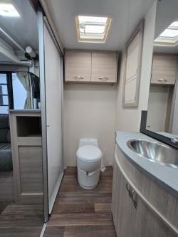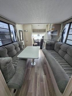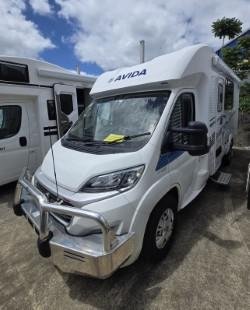 An extremely well presented motorhome with low kilometers, full rear ensuite with a separate shower and spacious living area. Features include: drop-down bed, separate shower & toilet, roof mounted reverse cycle air conditioning, roof hatch, diesel heater, comfortable lounges and central dining table, two burner gas stove, stainless sink, water filter tap, microwave, 110L 3- fridge/freezer, gas hot water system, freshwater tank, ample storage, flatscreen TV/DVD. Fiat Ducato chassis with 180hp turbo diesel, automatic transmission, dual reversing cameras, wind-out awning, 3x solar panels, 2 x batteries, front bull bar, towbar and external alloy storage box (removeable), 42,339kms