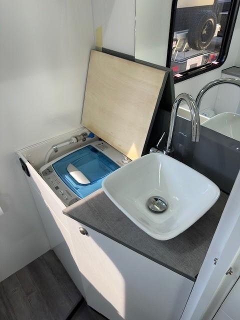 It includes a number of options including: Diesel heating, 150W Lithium house battery, 300W solar, top loader washing machine